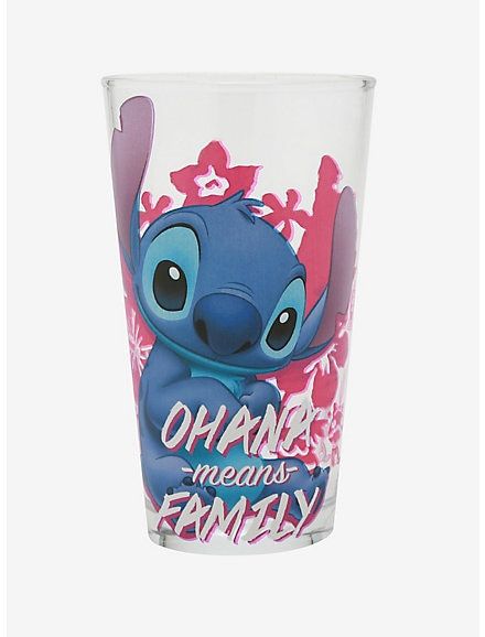 LILO AND STITCH - DISNEY - STITCH LARGE GLASS – "OHANA MEANS FAMILY" (16 OZ)