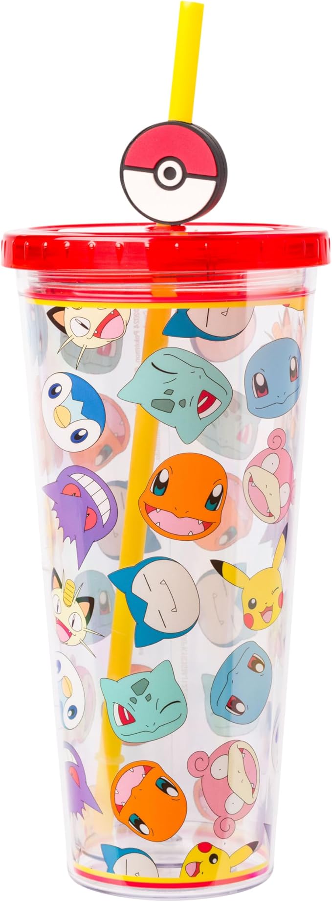 POKEMON - RED AND CLEAR FACES CUP WITH STRAW AND POKEBALL TOPPER (24 OZ) - COLD CUP is categorised DISHWARE / GLASSES / POKEMON and sold by l'Imaginaire, a store and specialised website.