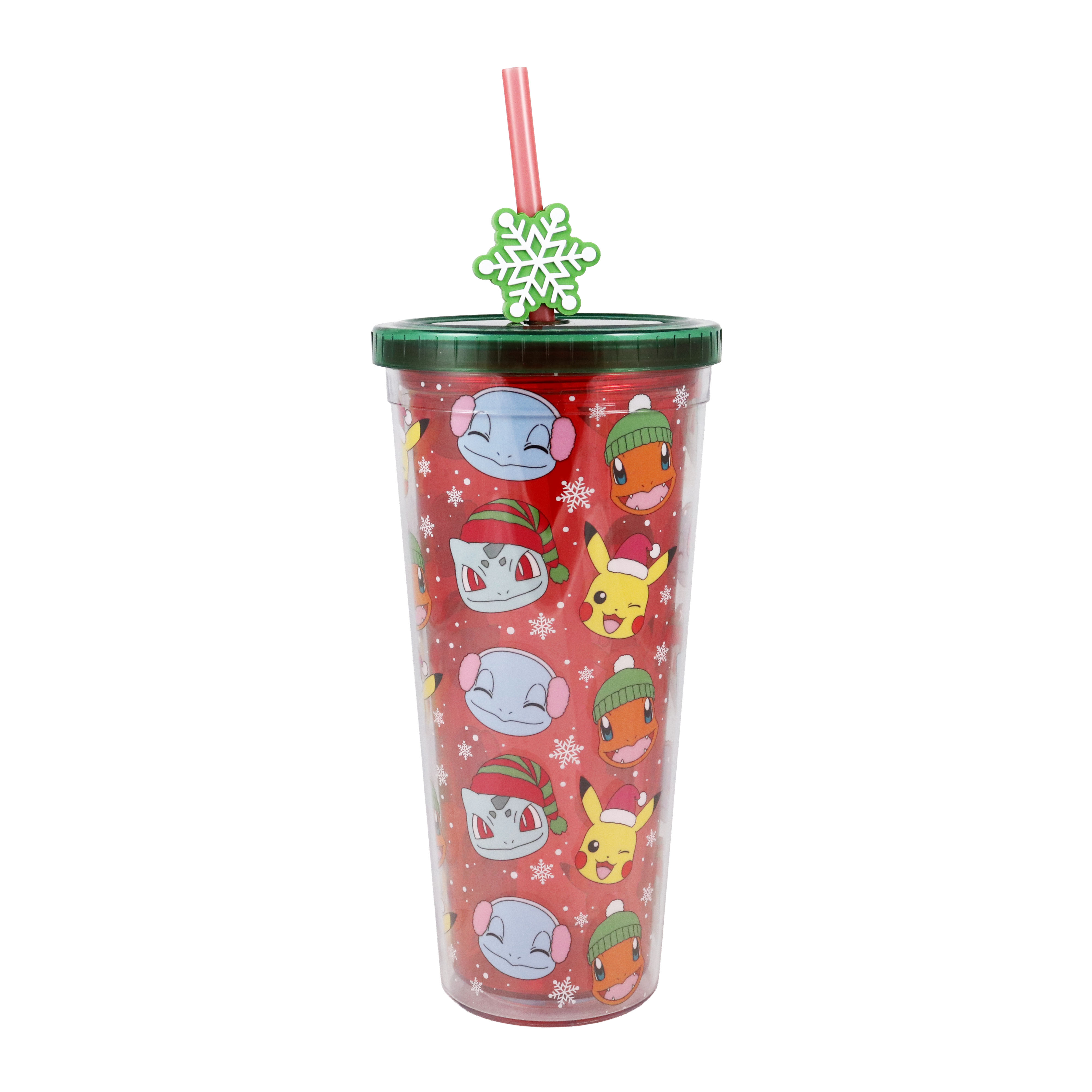 POKEMON - RED AND GREEN CHRISTMAS CUP WITH STRAW AND SNOWFLAKE TOPPER (24 OZ) - COLD CUP is categorised DISHWARE / GLASSES / POKEMON and sold by l'Imaginaire, a store and specialised website.
