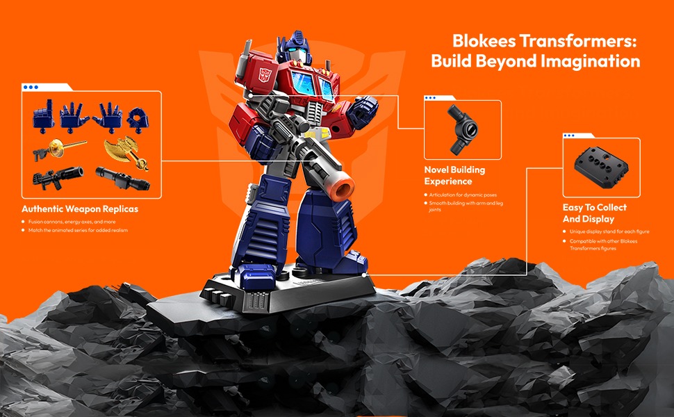 Dive into the Transformers universe with Blokees' Surprise series! Featuring 9 iconic characters like Transformers, Optimus Prime and Megatron. Each model kit boasts high-quality ABS construction, detailed paint, and multiple points of articulation for dynamic poses. Plus, hunt for the hidden 10th model kit – a special edition Optimus Prime with a unique paint job! With our assembly character toys, you can assemble your own customized Transformers bots for an even more personalized experience. Roll out and collect them all to enrich your Transformers legacy! The series features 9 regular model kits and 1 chase model kit. The regular model kits are all classic Transformers characters,