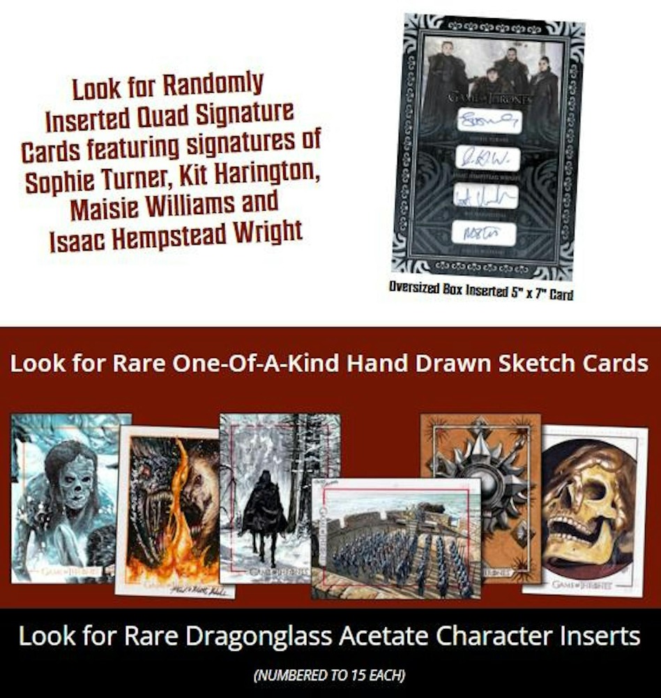- Find randomly inserted 5x7 Quad Signature Cards signed by Kit Harington, Maisie Williams, Sophie Turner and Isaac Hempstead-Wright!