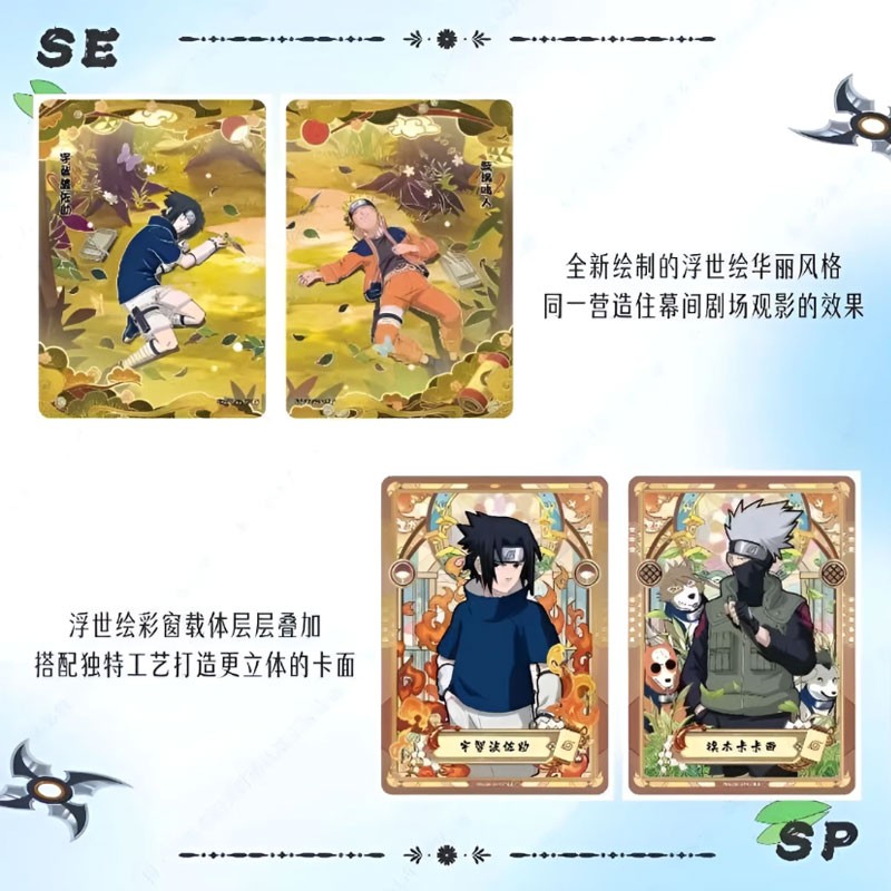 | I am very impressed with the quality and artwork for these Naruto cards. The new release is very fun to open. Got some very nice cards and hope to get more soon. I can’t wait for the next release, keep them coming! For all the Naruto fans, don’t miss out on this set. | |