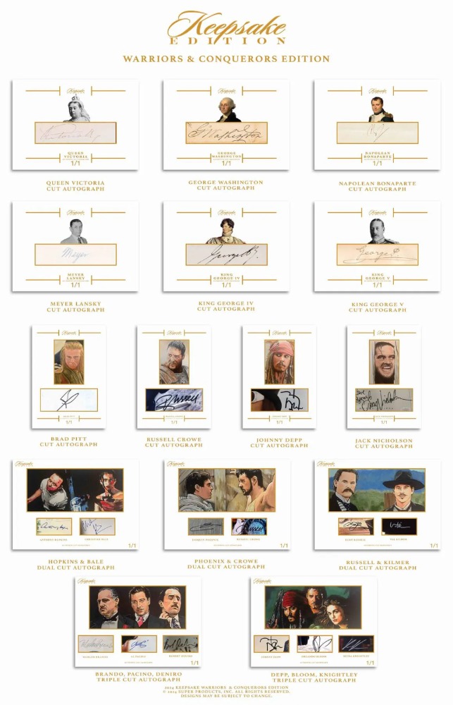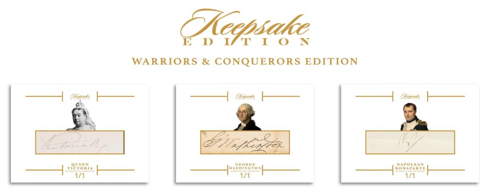 Look for Relic Subjects: George Washington, Alexander The Great, Achillies, Julius Caesar, Anne Bonny, Blackbeard, Christopher Columbus, Genghis Khan, Hua Mulan, Miyamoto Musashi, Hercules, Sitting Bull, Captain Kidd and 100s of more different subject/card combinations!