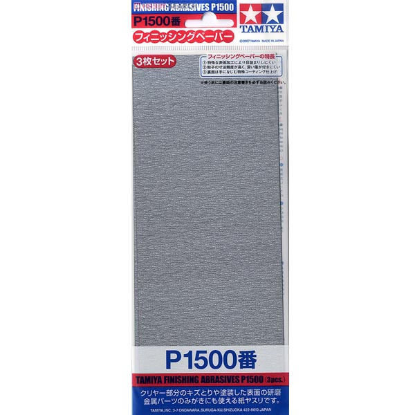 TAMIYA - FINISHING ABRASIVES P1500 (3 PIECES) - ABRASIVE is categorised PAINT AND MODELING TOOLS / TOOLS AND AIRBRUSHES / OTHER TOOL BRANDS and sold by l'Imaginaire, a store and specialised website.
