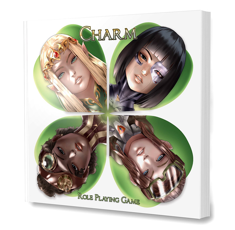 Universal RPG system. Learn in minutes. Build a character in seconds. Play any genre at any power level. Leverages what RPG’ers already know. 100 pages. Small 8” x 8” format. Contains 7 unique scenarios inside to get players into the action fast! Manga-style black and white, striking art. Great for beginners and advanced players alike. Conform Charm to your style of play.