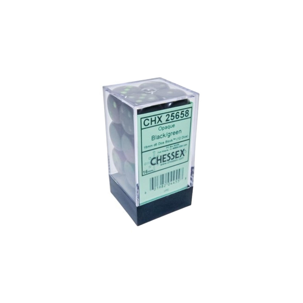 CHESSEX  -  12D6 DICE SET  # OPAQUE  -  12D6 DICE SET, OPAQUE OPAQUE BLACK/GREEN