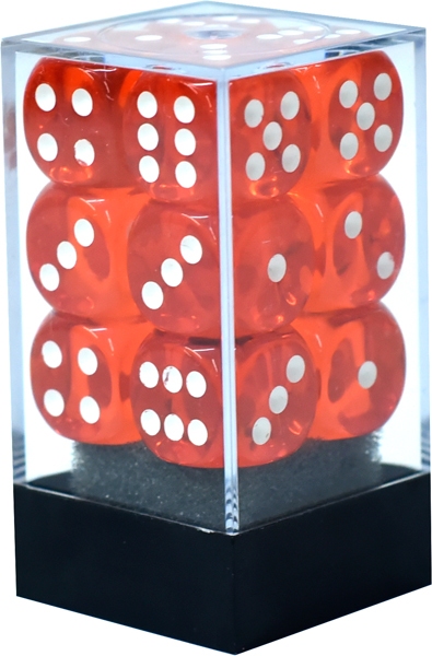CHESSEX - 12D6 DICE SET, TRANSLUCENT ORANGE WITH WHITE - 12D6 DICE SET TRANSLUCENT is categorised ROLE-PLAYING GAMES / ACCESSORIES / DICES and sold by l'Imaginaire, a store and specialised website.