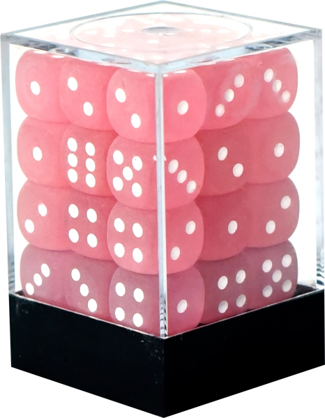 CHESSEX - 36D6 DICE SET # FROSTED - 36D6 DICE SET, FROSTED PINK WITH WHITE