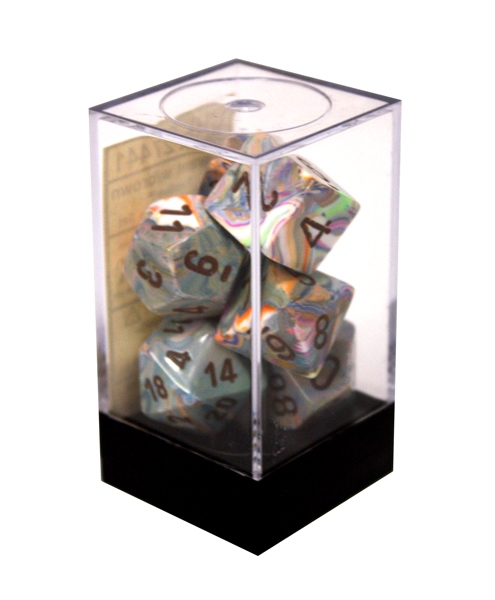 CHESSEX - 7 DICE RPG SET, FESTIVE VIBRANT WITH BROWN - 7 DICE RPG SET FESTIVE is categorised ROLE-PLAYING GAMES / ACCESSORIES / DICES and sold by l'Imaginaire, a store and specialised website.