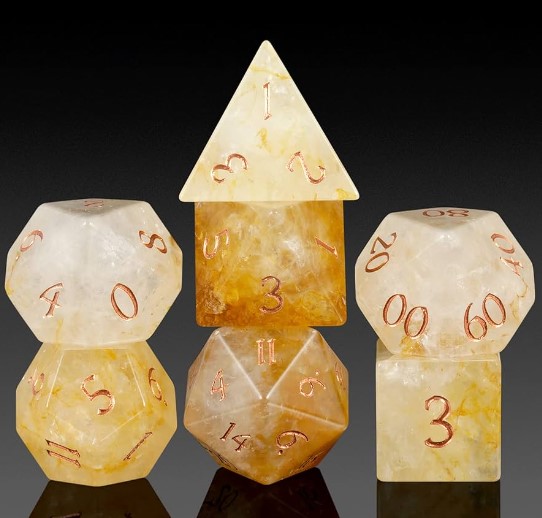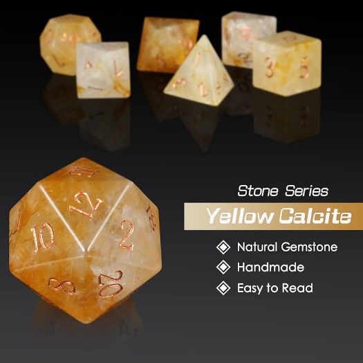 DICE HABIT - GEMSTONE, YELLOW CALCITE - 7 DICE RPG SET NATURAL GEMSTONE is categorised ROLE-PLAYING GAMES / ACCESSORIES / DICES and sold by l'Imaginaire, a store and specialised website.