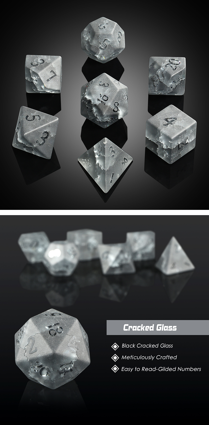 DICE HABIT - 7 DICE RPG SET # GLASS - GLASS, SHATTERED ONYX ZIRCON