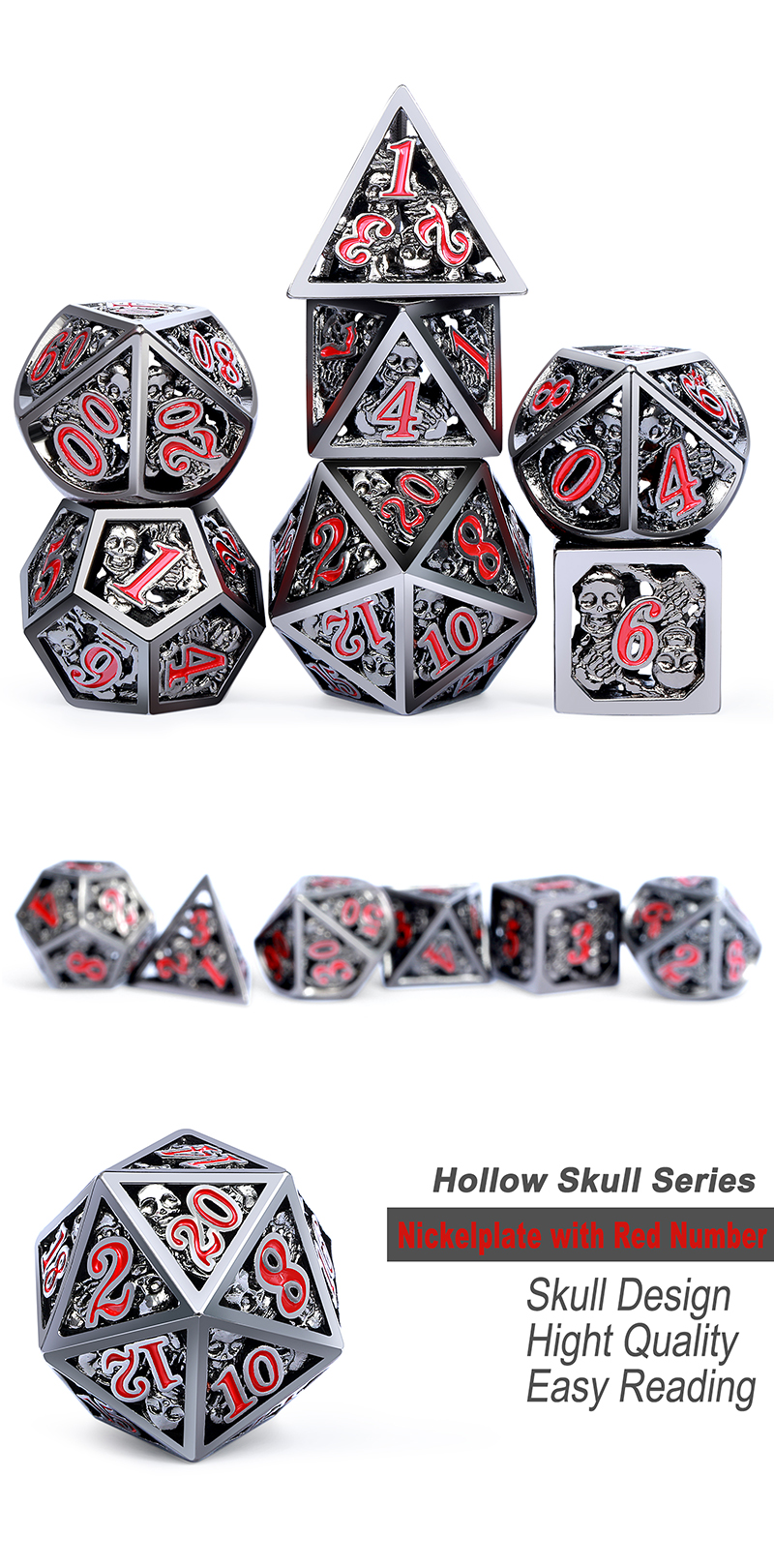 DICE HABIT - 7 DICE RPG SET # HOLLOW SKULL - HOLLOW, SKULL GUNMETAL AND RED