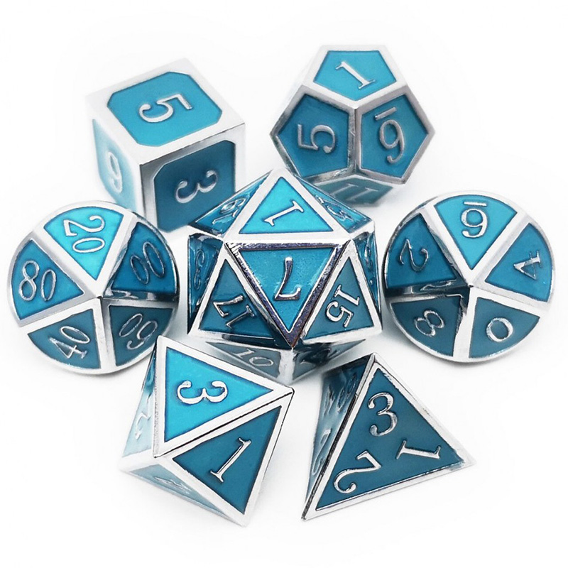 DICE HABIT - 7 DICE RPG SET # METAL & ENAMEL - METAL & ENAMEL, BLUE GLOW IN THE DARK