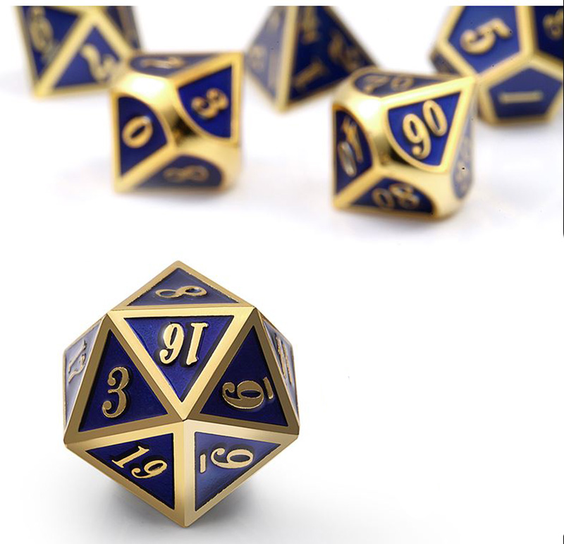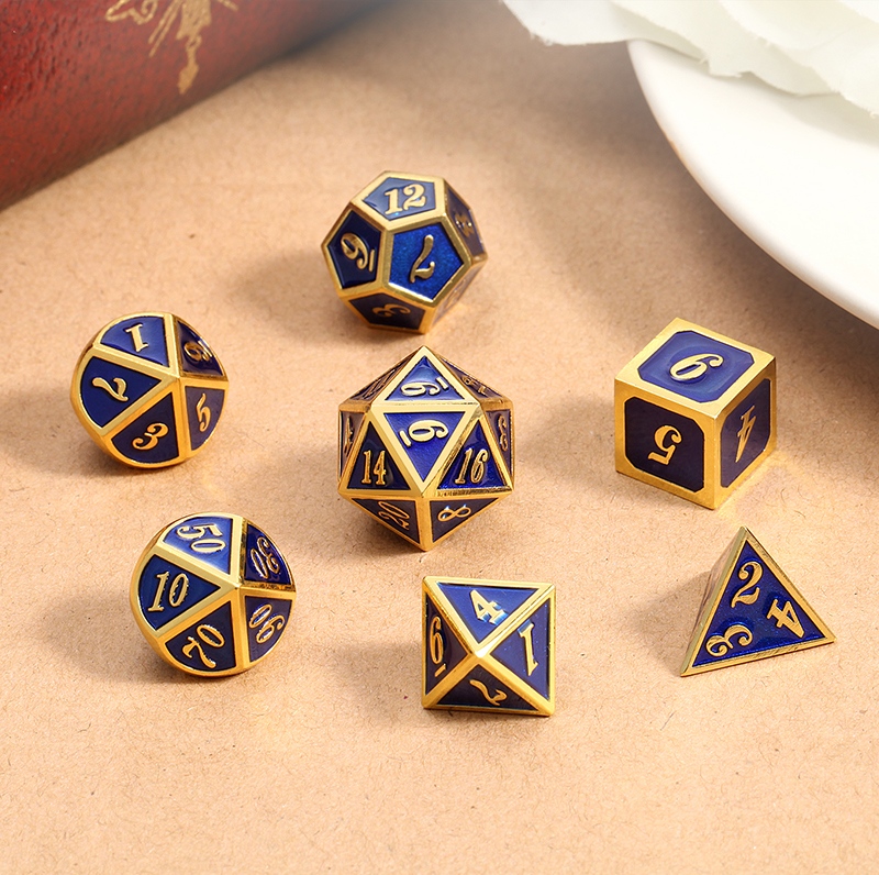 DICE HABIT - 7 DICE RPG SET # METAL & ENAMEL - METAL & ENAMEL, BLUE & GOLD