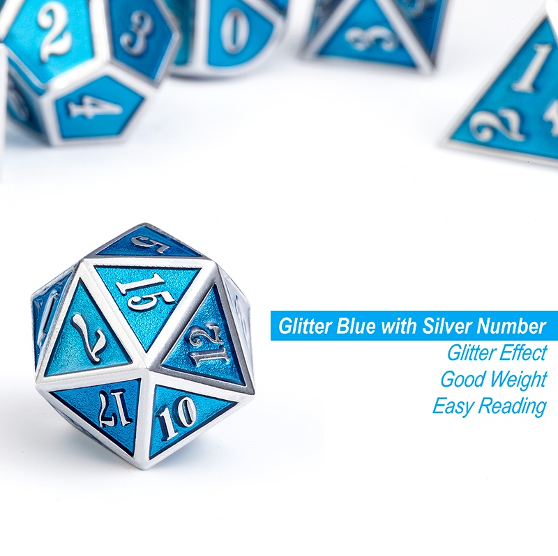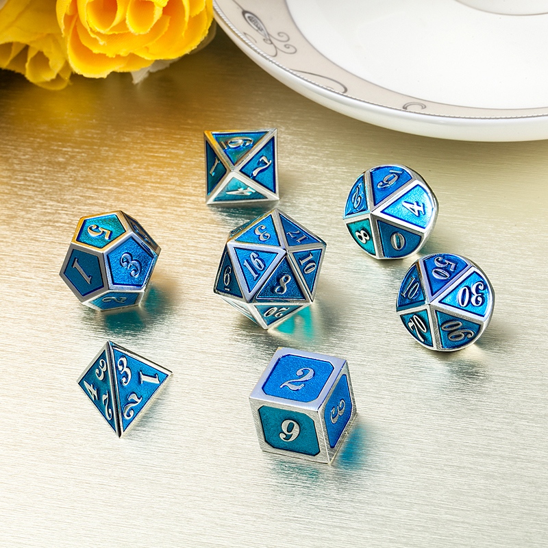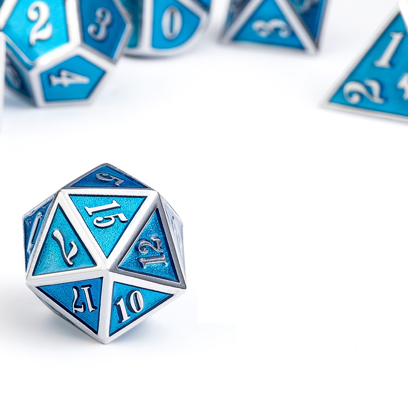 DICE HABIT - 7 DICE RPG SET # METAL & ENAMEL - METAL & ENAMEL, CYAN & SILVER