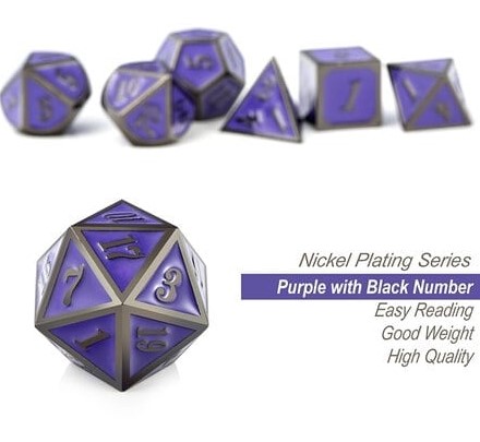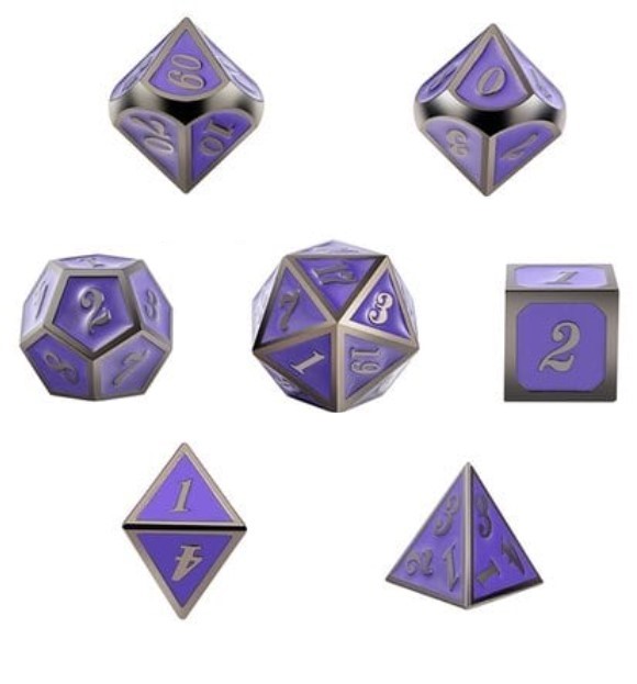 DICE HABIT - 7 DICE RPG SET # METAL & ENAMEL - METAL & ENAMEL, GRAPE & GUNMETAL