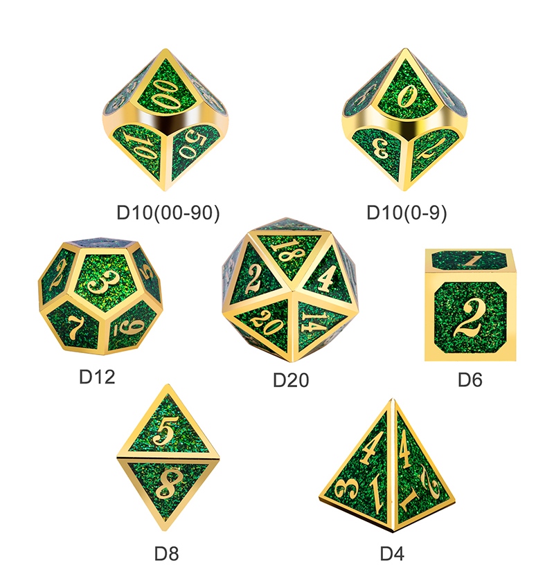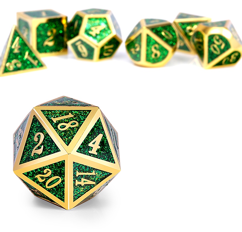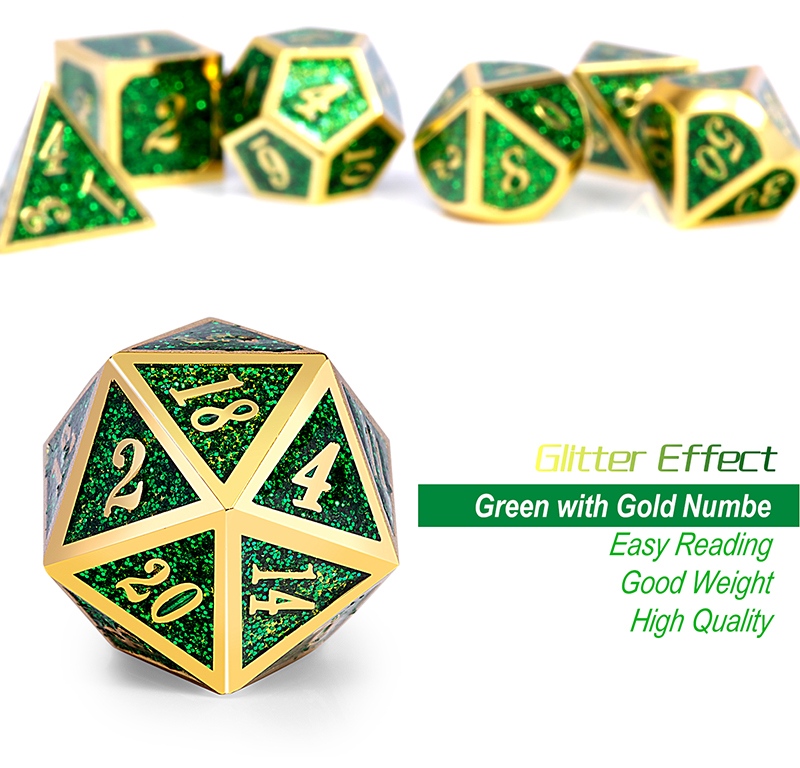 DICE HABIT - 7 DICE RPG SET # METAL & ENAMEL - METAL & ENAMEL, GREEN GLITTER