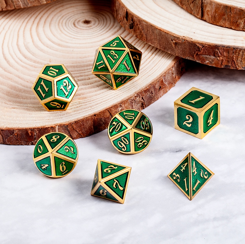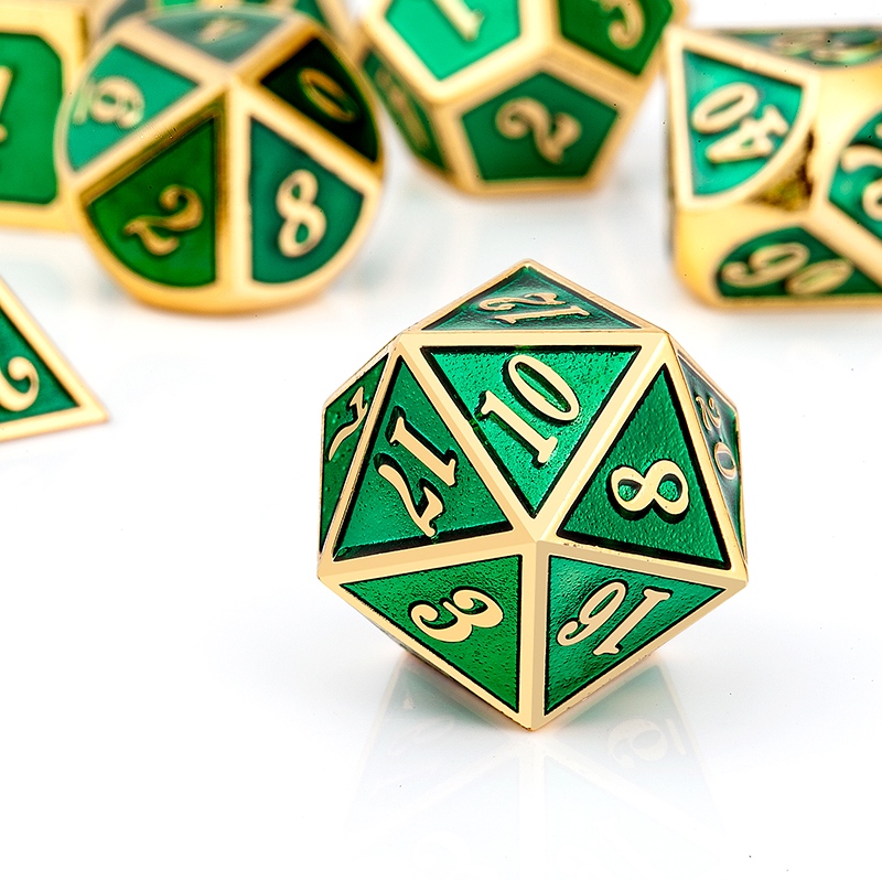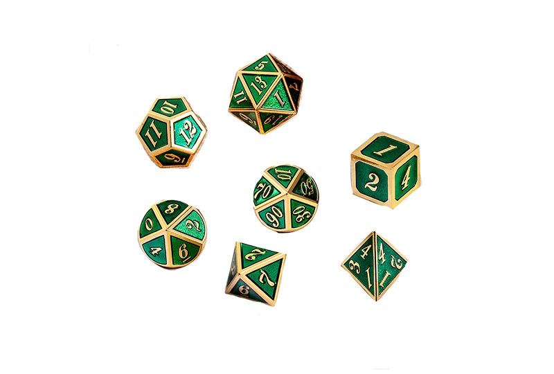 DICE HABIT - 7 DICE RPG SET # METAL & ENAMEL - METAL & ENAMEL, GREEN & GOLD
