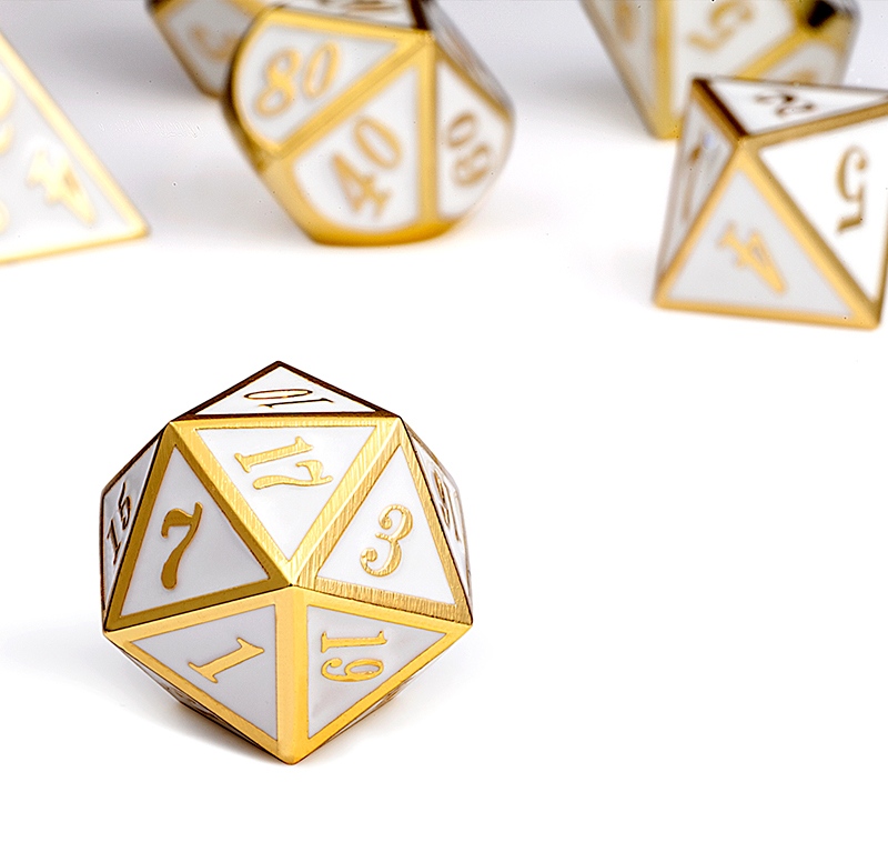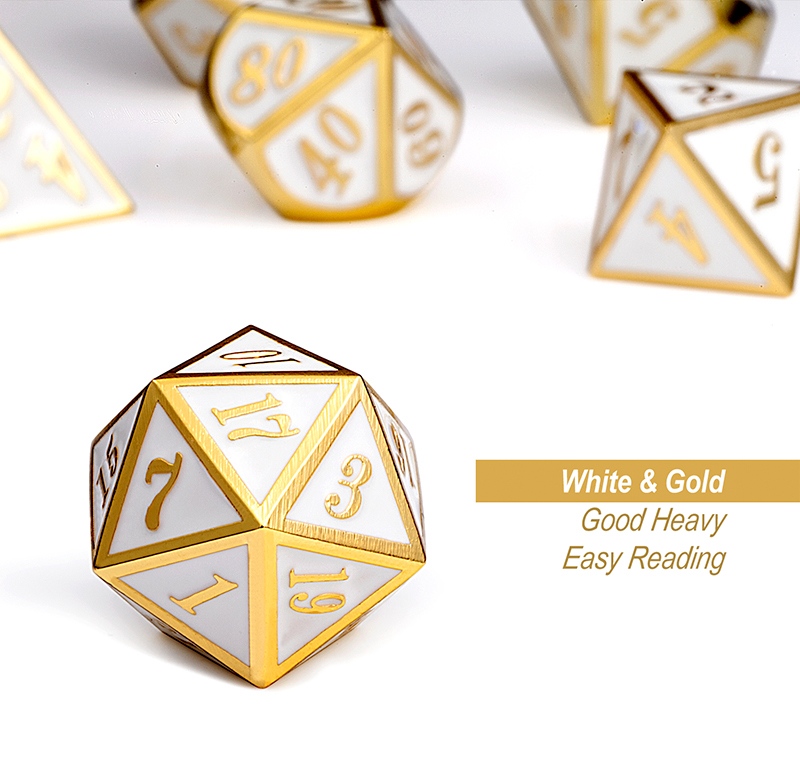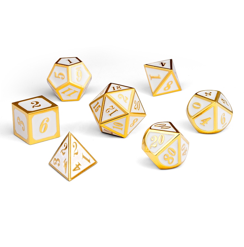 DICE HABIT - 7 DICE RPG SET # METAL & ENAMEL - METAL & ENAMEL, WHITE & GOLD