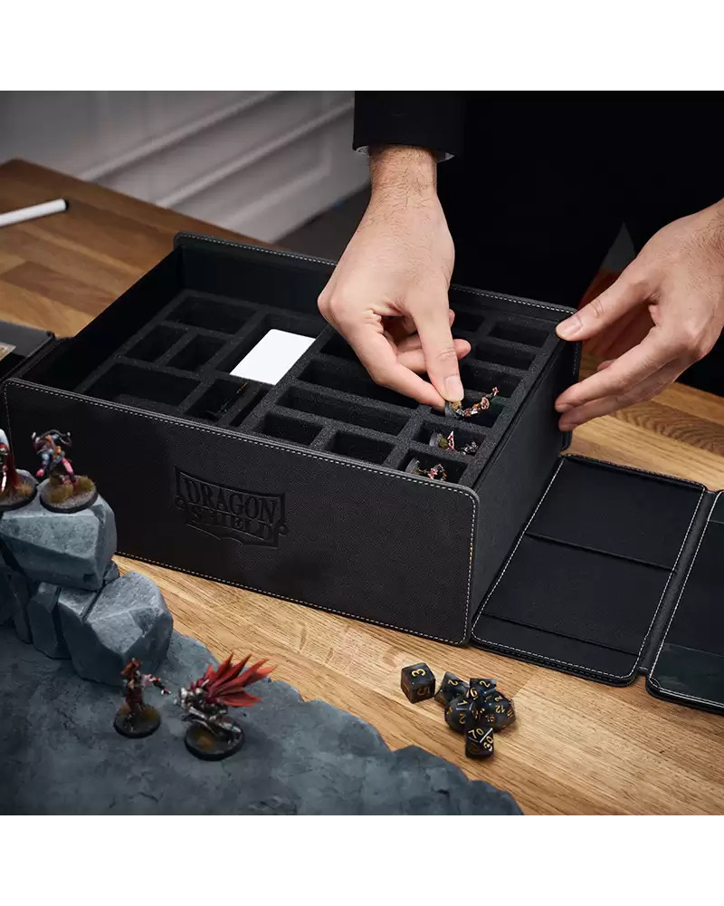 | Très facile à personnalisé, il permet d'apporter un bon nombre de miniatures et de livres en un seul boîtier qui sera aussi d'écran de maître | |