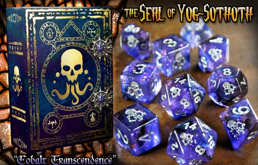 ELDER DICE - 9 DICE RPG SET, MYTHIC THE SEAL OF YOT-SOTHOTH COBALT TRANSCENDENCE