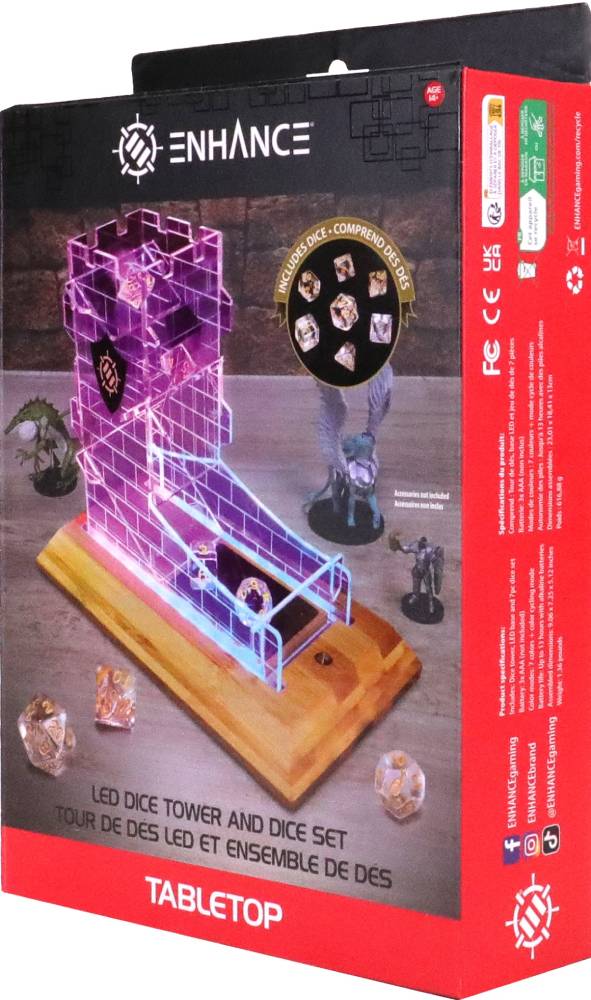 ENHANCE - LED DICE TOWER WITH 7 CLEAR DICE SET is categorised ROLE-PLAYING GAMES / ACCESSORIES / DICE TOWERS and sold by l'Imaginaire, a store and specialised website.