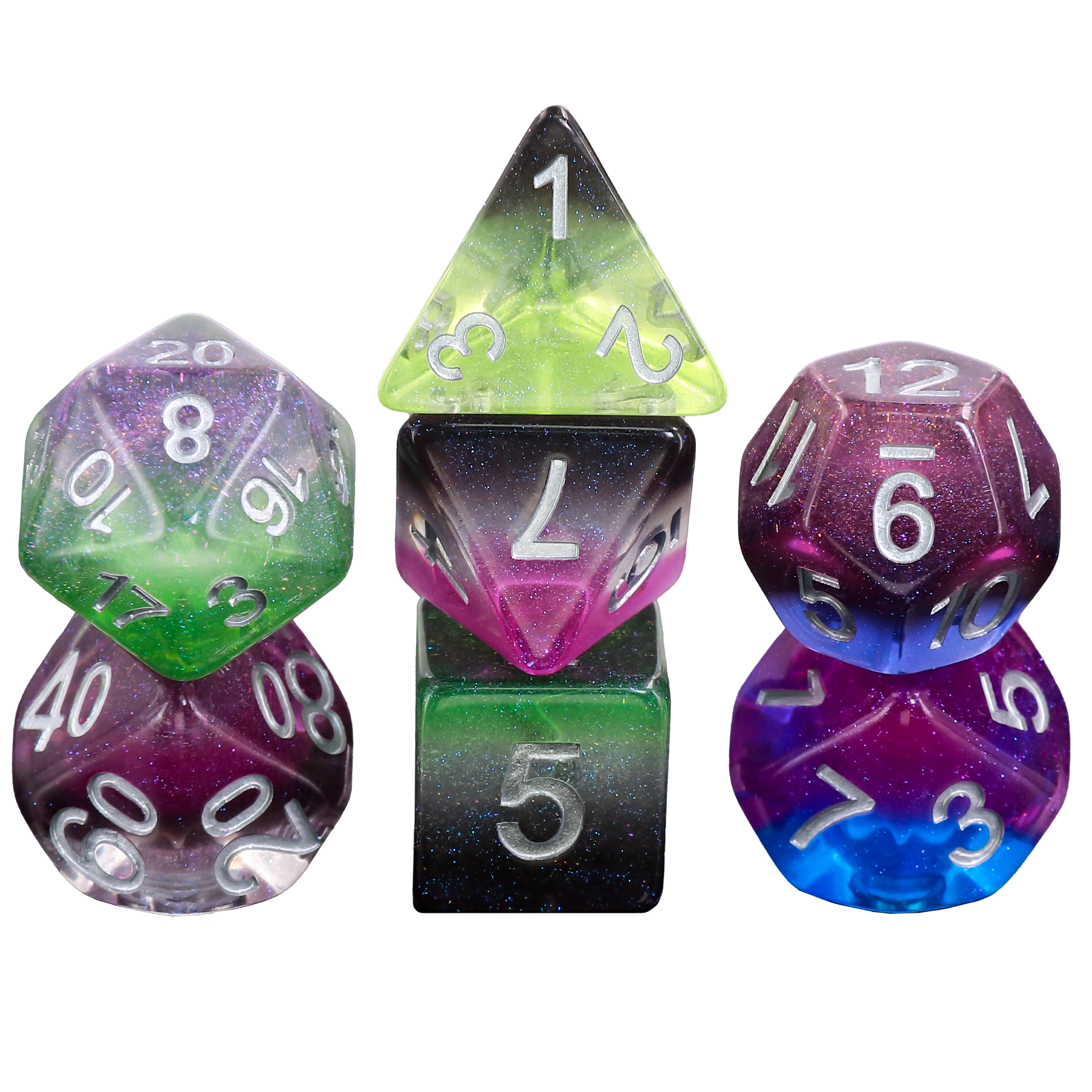 - 2 full polyhedral dice sets (7 dice per set)