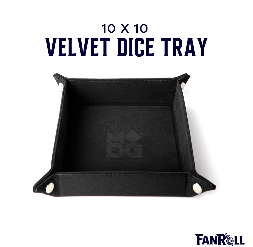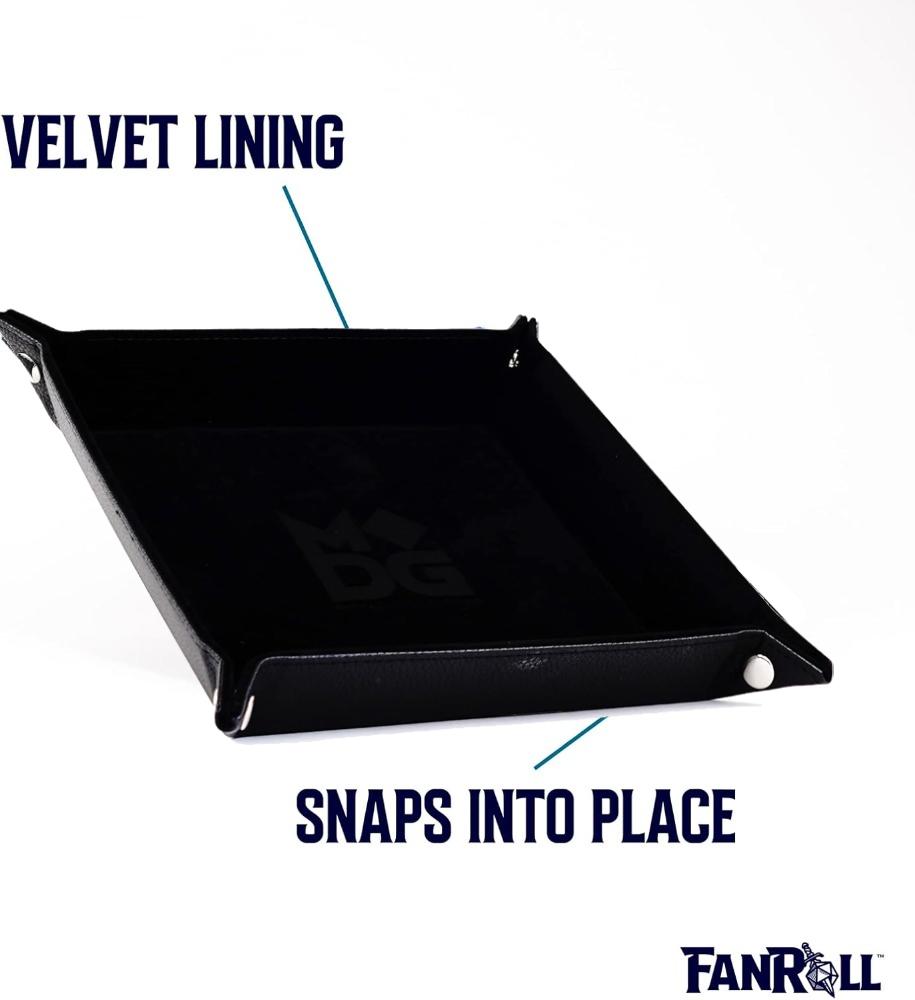 MDG folding dice trays protect your gaming surface while controlling your rolls! Never worry about your gaming table or dice again. Our high-quality, velvet dice trays fold flat to fit into your folder or backpack, and easily snap into place when you're ready to game.
