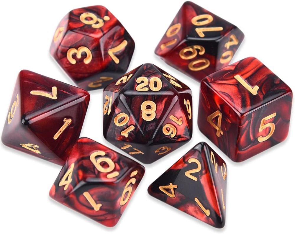FANROLL  -  RPG DICE SET, BALCK, RED & GOLD