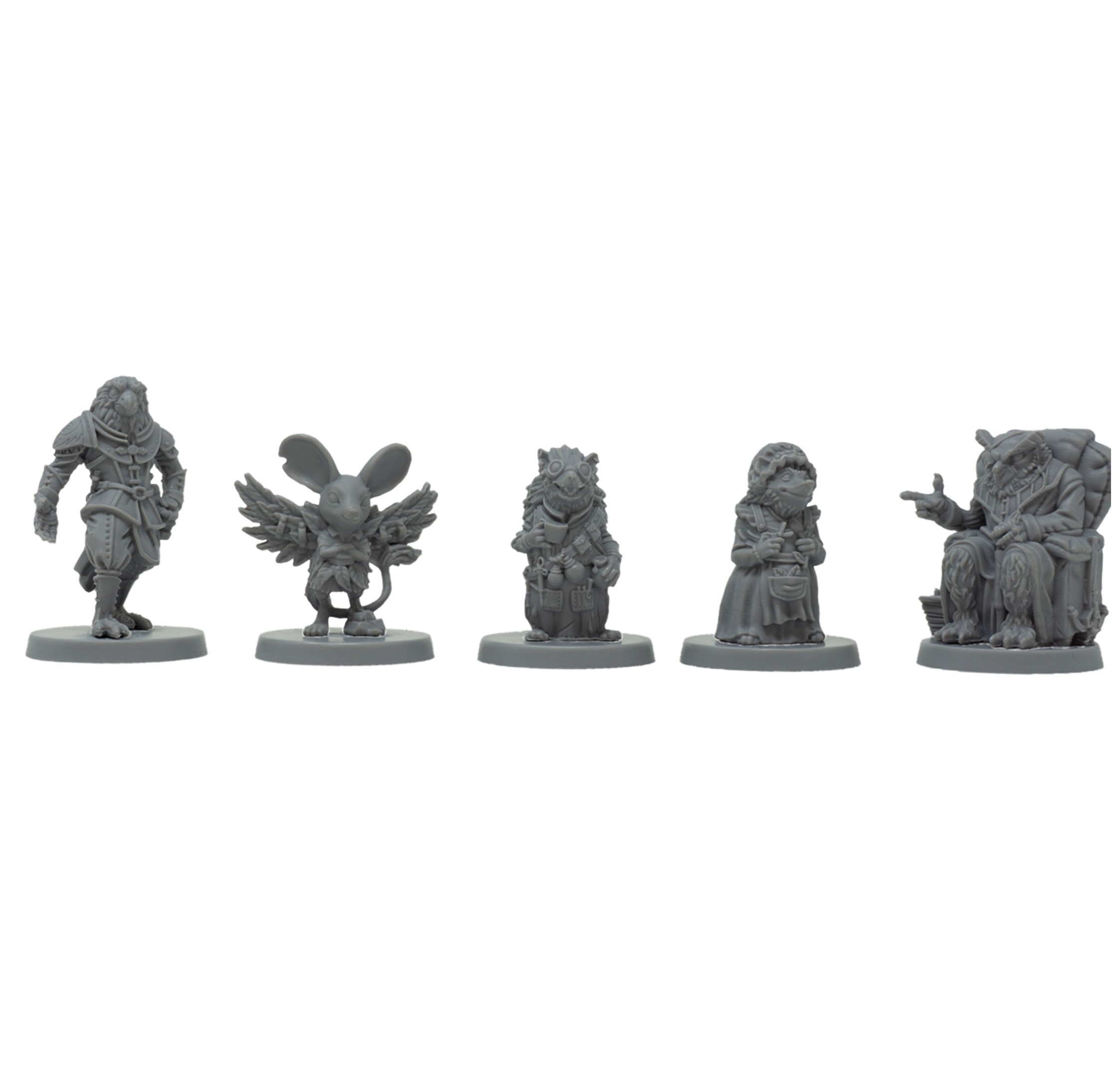 Set of five 1" base Humblewood Minis from the Humblewood Tales supplement book!