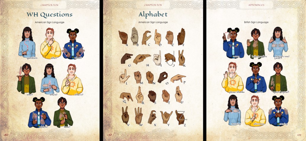 | Very cool, combines celtic faerie lore and learning sign language (the fey use a style of magic and spells that incorporate sign language, either American or British as players prefer) with the fun of a tabletop rpg (one which can be played as a stand-alone game or could be, as I have, incorporated into your D&D fey worlds). Admittedly I was surprised to see the artwork which revealed the book is aimed at a younger audience, however the characters are based on legit Celtic myths, the sign language is incorporated in a very fun, stylish and on-theme way so upscaling for D&D and for a more mature adventuring party was not at all difficult. | |