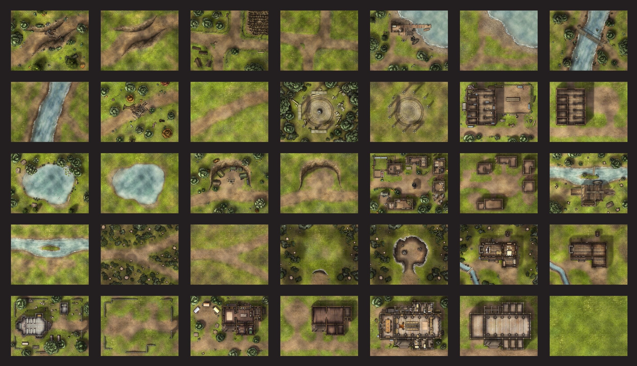 INTO THE WILDS  -  BATTLE MAP  -  BATTLEMAP BOOKS, FORESTS AND VILLAGES