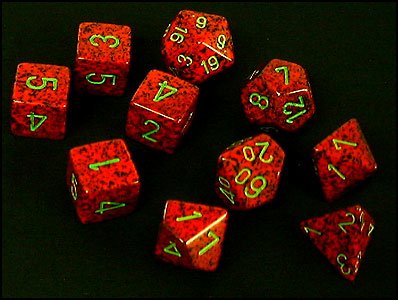 A set of 10 polyhedral dice, ideal for your Dungeon and Dragon 5e and/or Pathfinder Roleplaying games.