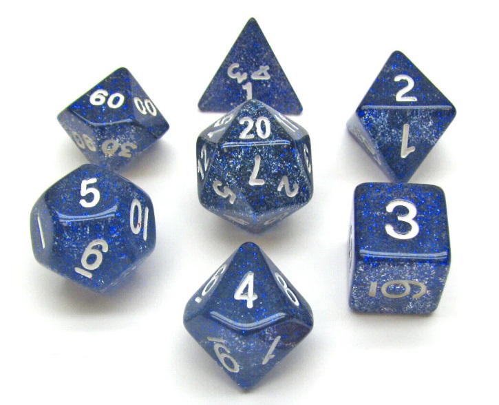 KOPLOW  -  7 DICE RPG SET  -  7 POLYHEDRAL DICE - GLITTER - BLUE