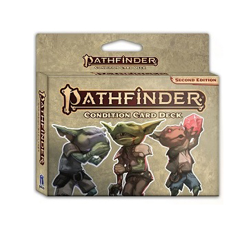 | C’est un complément à la nouvelle édition de Pathfinder qui sera très pratique pour faire le suivi des Conditions en cours de partie… Cependant, le design des cartes laisse un peu à désirer. Je m’attendais à voir les Goblins sous toutes les conditions, mais au lieu de cela, nous avons droit à des pictogrammes plutôt génériques. | |