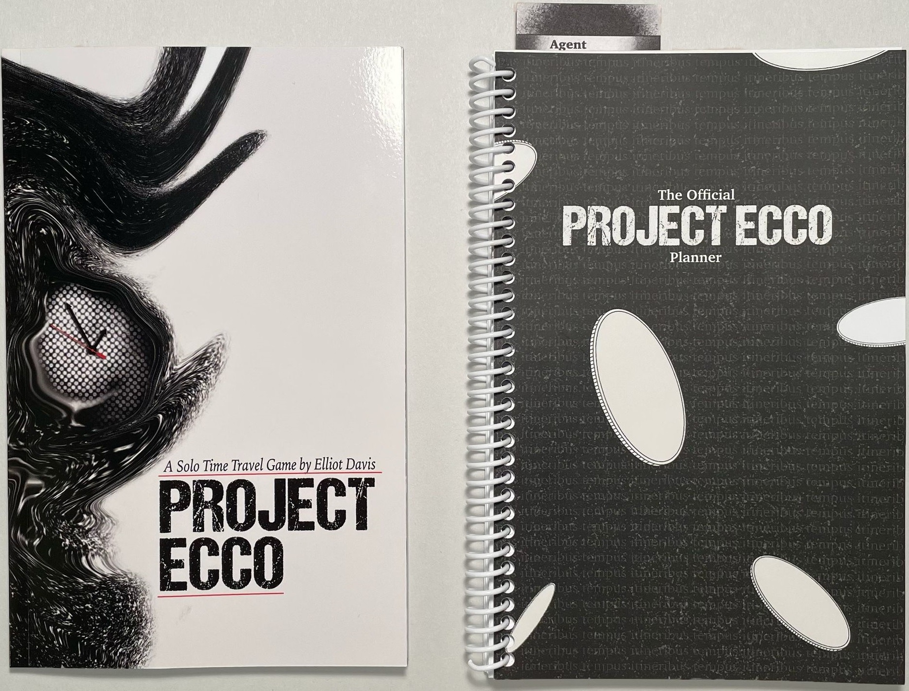 Project ECCO is a game of time travel and cosmic horror—a solo journaling game with a twist. Time travel across the pages of a planner, writing in and marking up the dates based on prompts as you go, ultimately creating an artifact of your travels through time.