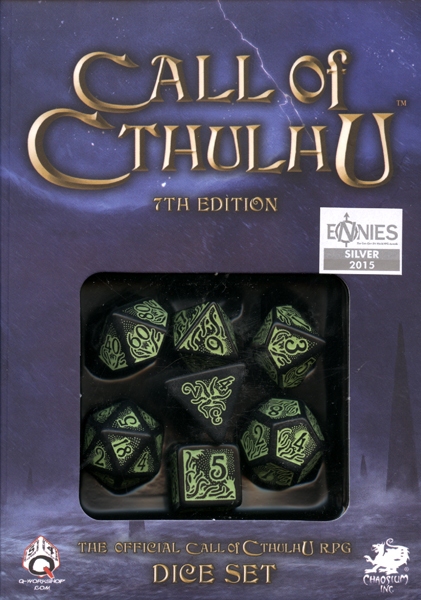 Q-WORKSHOP - CALL OF CTHULHU, RPG DICE SET, BLACK & GREEN - CALL OF CTHULHU is categorised ROLE-PLAYING GAMES / ACCESSORIES / DICES and sold by l'Imaginaire, a store and specialised website.