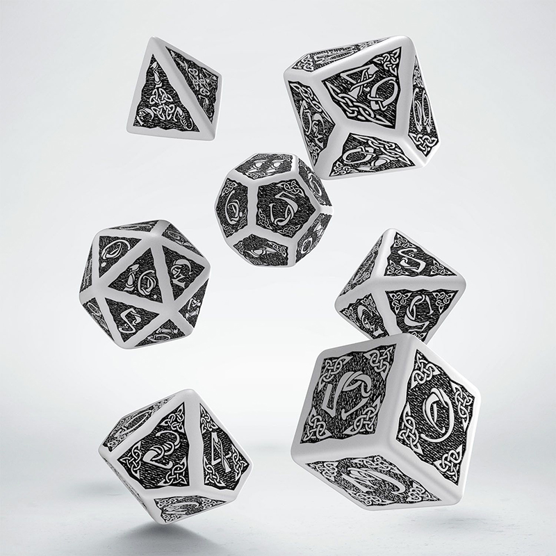 Q-WORKSHOP - RPG DICE SET, CELTIC BLACK AND WHITE - CELTIC is categorised ROLE-PLAYING GAMES / ACCESSORIES / DICES and sold by l'Imaginaire, a store and specialised website.