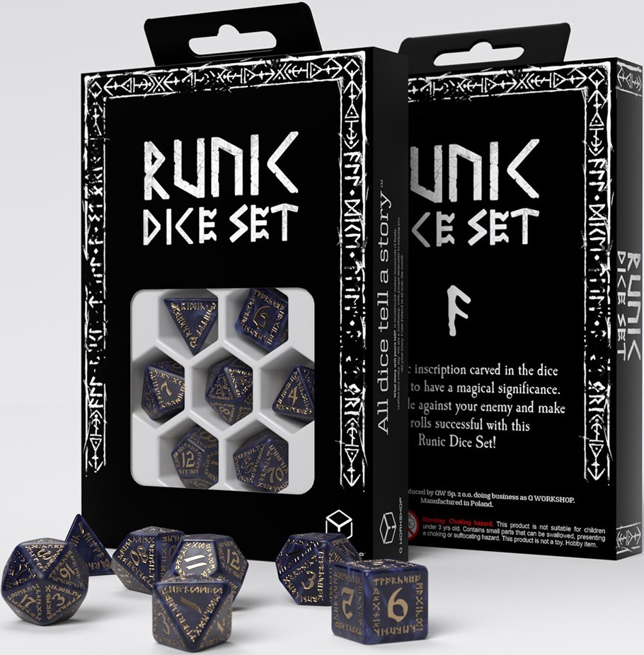Q-WORKSHOP  -  RUNIC  -  RPG DICE SET, RUNIC MIXED BLUE GOLD