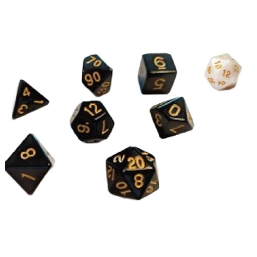 SIRIUS DICE - RPG DICE SET, SOLID BLACK WITH GOLD is categorised ROLE-PLAYING GAMES / ACCESSORIES / DICES and sold by l'Imaginaire, a store and specialised website.