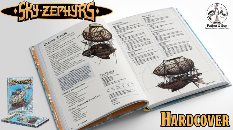Sky Zephyrs includes a QR code for a one month free subscription to the first ever TTRPG "vehicle builder webpage application." In the builder app, you'll be able to select from over 200 parts to customize your own airships. In the future, we'll expand the app for you to create other types of custom vehicles.