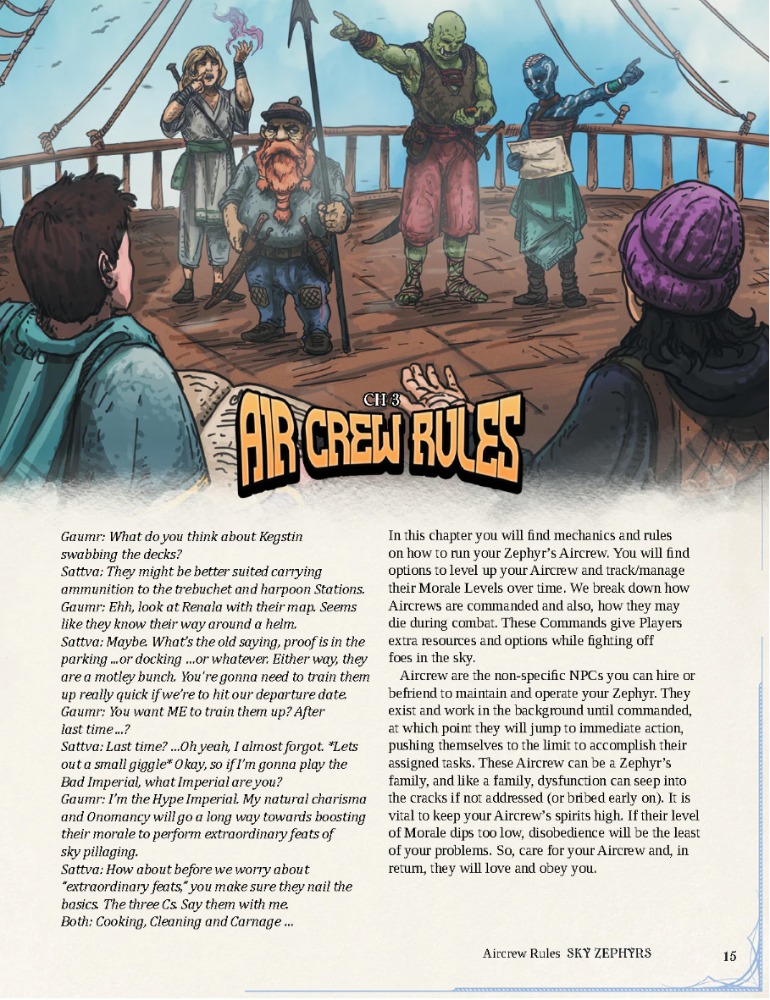 Vehicle Combat in the sky can become an ever-changing and strategic chess match where Zephyrs and their crews are trying to outwit, outmaneuver and destroy each other. Knowing the correct moment to board or Ram an enemy Zephyr, or even Repair a Compromised Station, could be the difference between life and death for your players and their Aircrew. Using various well-linked and well-timed combinations of the combat mechanics your players can accomplish incredible aerial feats never before seen by a creature.