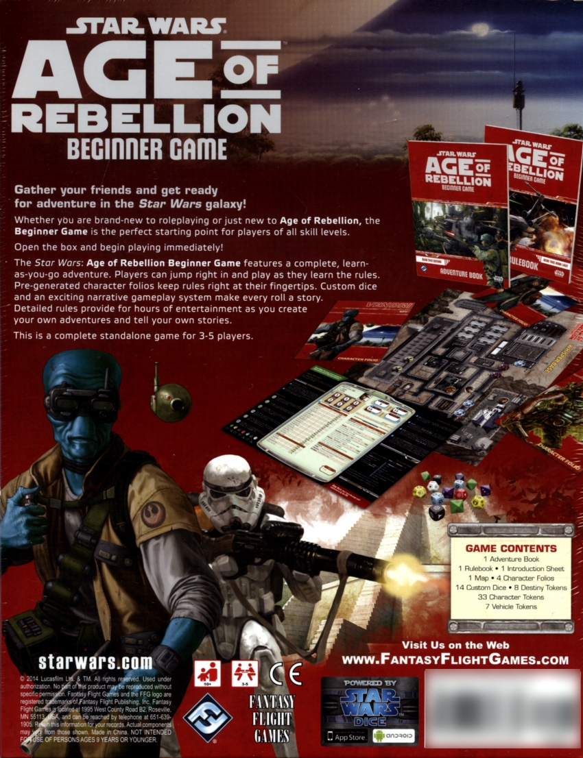 Whether you are brand-new to roleplaying or just new to Age of Rebellion, the Beginner Game is the perfect starting point for players of all skill levels.