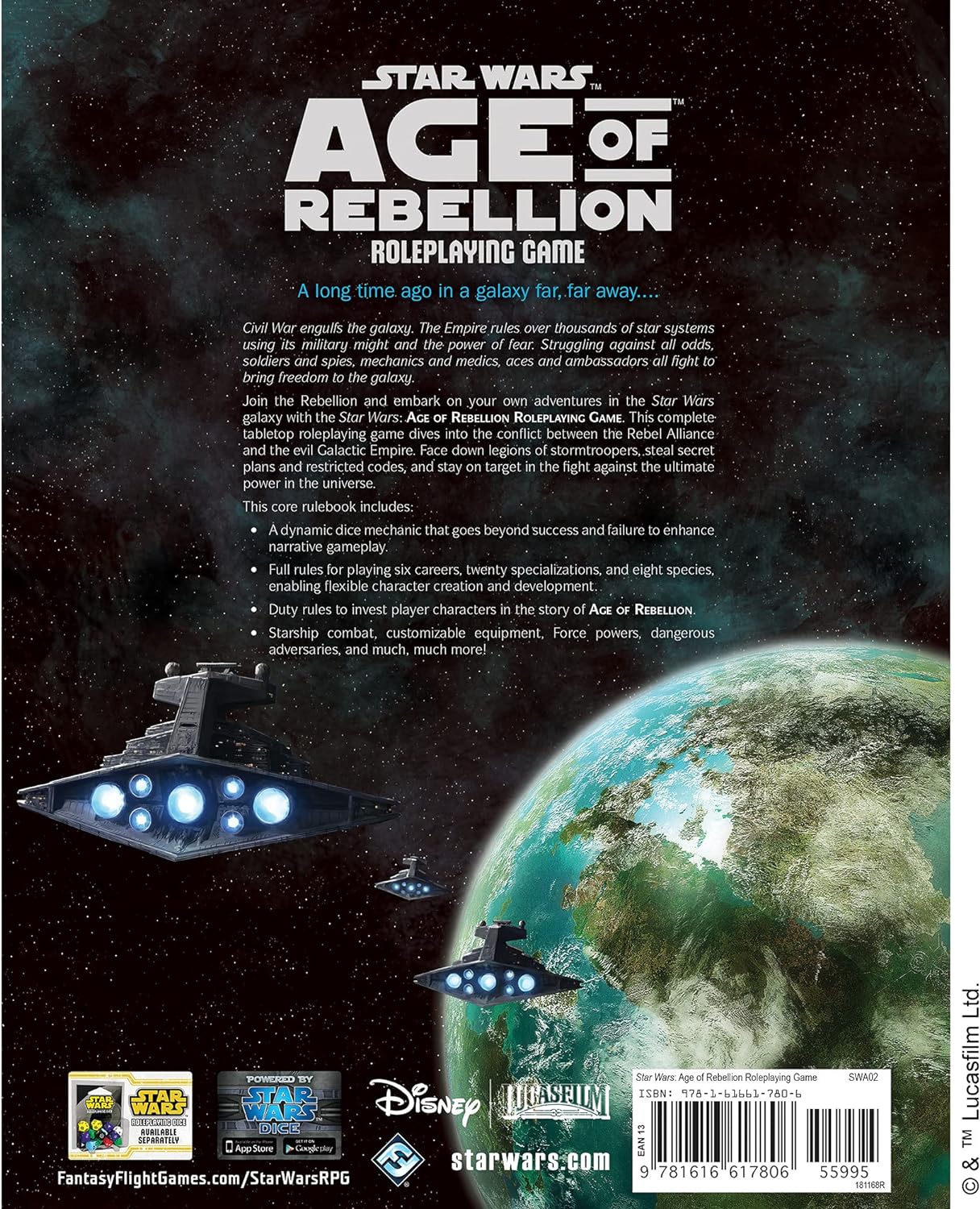The 464-page Star Wars®: Age of Rebellion™ Core Rulebook provides everything players and GMs need to begin their adventures in the Star Wars universe, including: