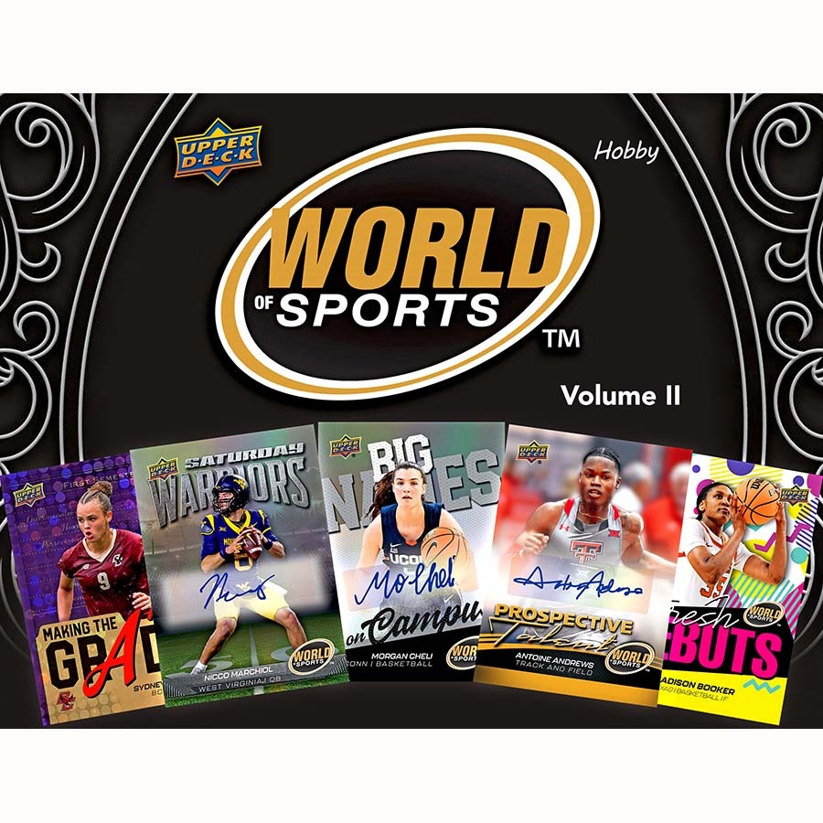 - Upper Deck World of Sports returns with a 300-Card Base Set LOADED with top collegiate athletes! There are over 15 different colleges and universities that are featured and a wide variety of sports.