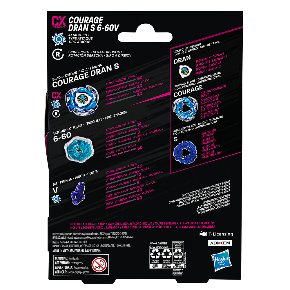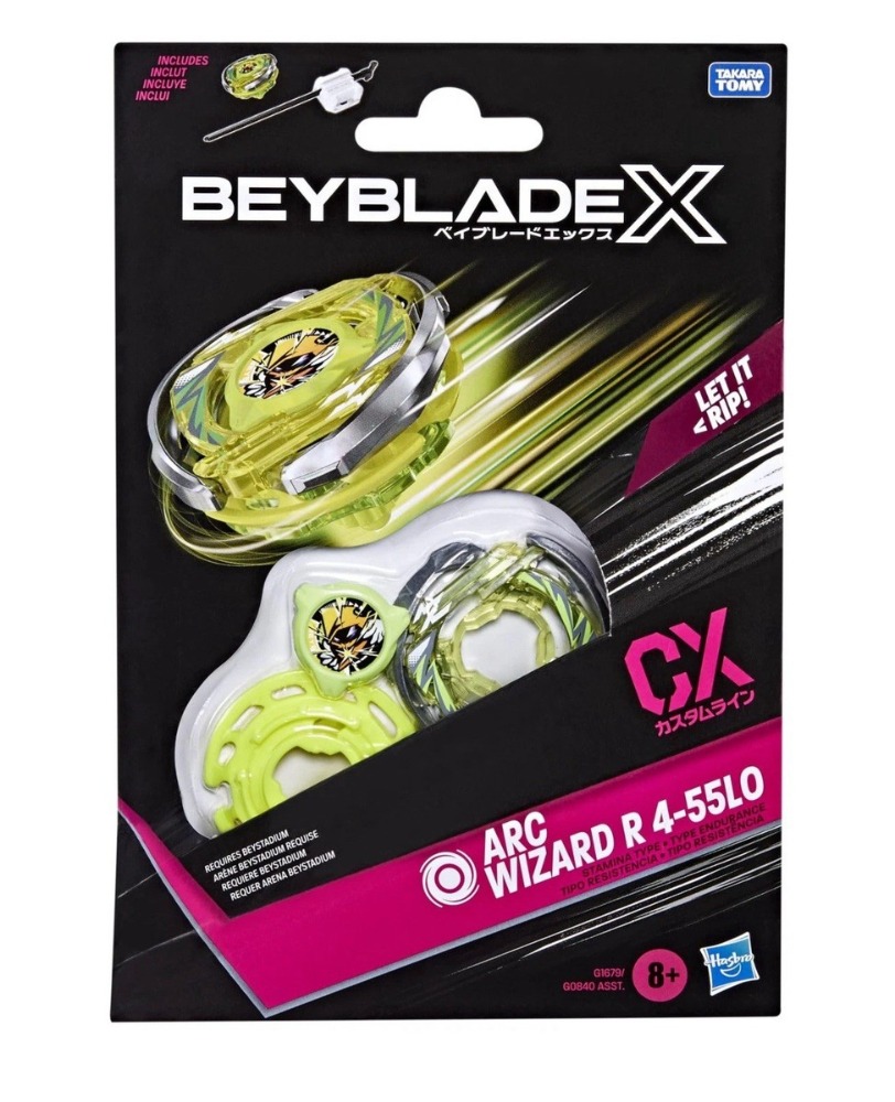 Experience the thrill of the next generation of Beyblade stadiums, launchers and tops: Beyblade X with the Beyblade X pack which includes 1 right-spinning top and launcher (Beystadium required, sold separately). Launch right into battle or reconfigure the interchangeable blade, ratchet, and bit of this Starter Pack with those of other Beyblade X tops (sold separately) to create your own unsurpassable Bey. Beyblade X features the X-Celerator Gear System innovation to level-up your game. When the gear of a Beyblade X top engages the rail of the Beystadium arena, it can super-accelerate into an Xtreme Dash rocketing it around the stadium for crushing collisions and epic bursts. Bladers launch their tops into fierce clashes against their opponent’s scoring points with each confrontation – first to score 4 points wins.