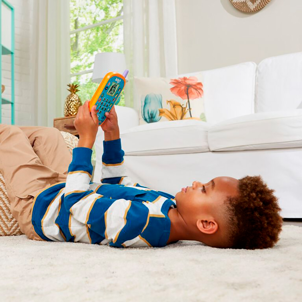 Jouez à des jeux et à des activités qui présentent des animations des personnages et des phrases populaires de l'émission. Appuyez sur les boutons avec les images de Bluey, de sa famille et de ses amis pour entendre des phrases sur chacun d'eux. L'activation vocale permet aux enfants de discuter avec Bluey et Bingo pour un jeu de rôle interactif. Changez la sonnerie, la luminosité et bien plus encore, comme avec un vrai téléphone. Jouez à quatre jeux qui reprennent les thèmes de différents épisodes. Si Bingo est de mauvaise humeur, encouragez-la en appuyant sur les touches numériques pour jouer une musique sur laquelle elle peut danser. Utilisez les touches fléchées pour aider Bingo à faire le poirier. Lorsque Bluey prétend être une chauve-souris frugivore, appuyez sur les flèches pour l'aider à attraper des fruits à manger. Aide Bluey à faire des bulles en soufflant dans le microphone. C'est parti !