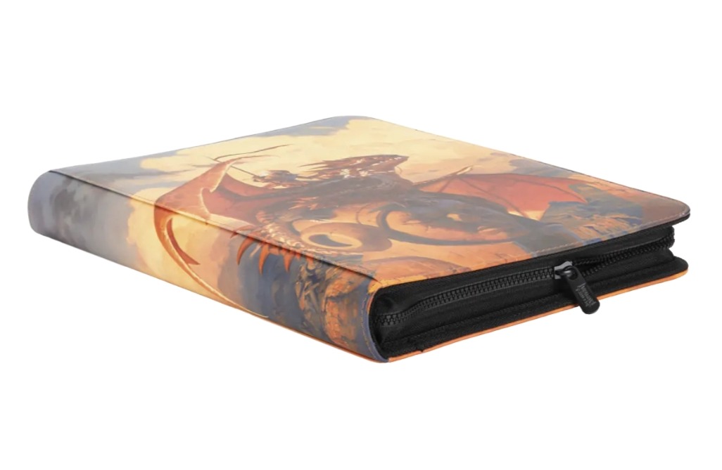 The stunning, graphic cover opens to reveal a high-quality interior, perfect for protecting your precious collection. Free samples of Dragon Shield 16- and 18-pocket pages in both Non-Glare and Clear are included. The sturdy zipper secures the binder during transport, and you can slide a label into the spine pocket for ultimate organization.