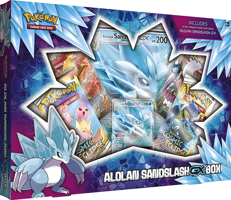 The Pokémon TCG: Alolan Sandslash-GX Box includes: