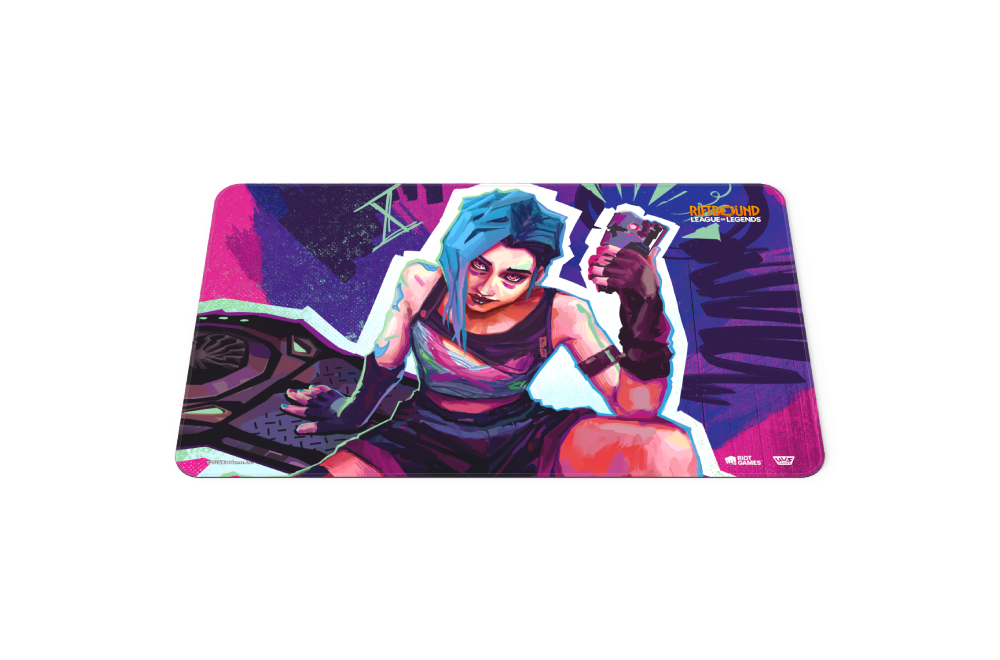 Forge your path through the Rift with this Jinx playmat that provides protection, style, and serious presence at the table. This stitched-edge playmat (presented in a themed box) allows players to protect their cards with elegance.